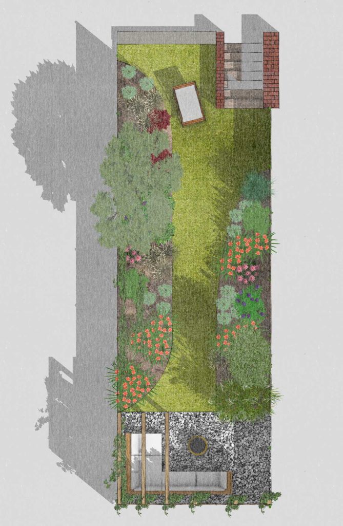 3. Koncepcja i wizualizacje. Przygotuję dla Ciebie dwie propozycje koncepcyjne, na których pokażę rozkład wszystkich stref, schemat funkcjonalny ogrodu oraz moodboardy z propozycjami doboru roślin. Następnie (po wyborze jednej z koncepcji oraz wprowadzeniu uwag) stworzę wizualizacje i zaproponuję dobór roślin, dzięki czemu zobaczysz, jak będzie wyglądał Twój przyszły ogród.